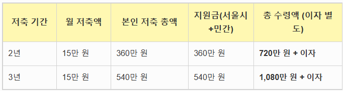 - 방식: 3~5년간 저축 시, 저축액의 50% 추가 적립